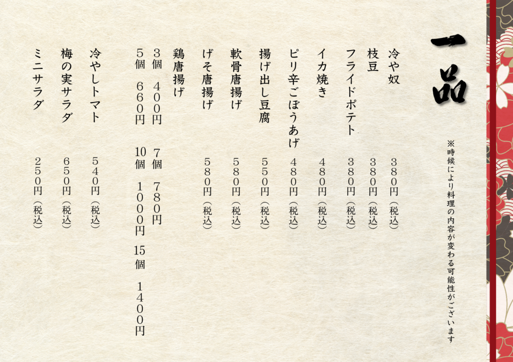 山口市でお食事処とお酒の飲める居酒屋をお探しの方へ。